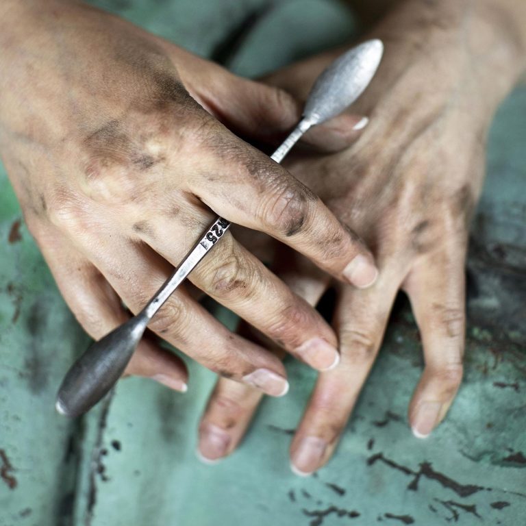 När hon talar om metallen märks det att den fortfarande har ett starkt grepp om henne. Trots allt som talar emot. Att hon skadar sig. Att hon fortfarande har en hög plåsterbudget. Att materialet är tungt, besvärligt och dyrt.